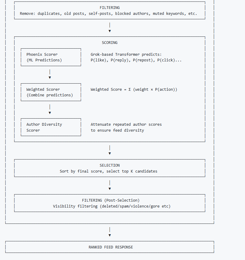 所有候选内容,最终都会交给 Phoenix Ranking Transformer。